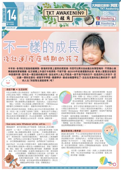 不一樣的成長-後社運/疫症時期的孩子 今年初,各項社交措施相繼解除,香港終於跟上復常的尾班車,市民可以再次自由進出各類型場所、不用擔心接觸過誰就被隔離、社交媒體上外遊打卡相湧現。不經不覺,由2019年社會運動到此刻,香港人整整活在惶恐中四個年頭,四年是一個怎樣的概念呢?放在成年人身上可能是一段不長不短的日子,但是四年之於孩子,足以讓一個初生嬰兒,經歷牙牙學語,蹣跚學步,變成幼稚園學生了。出生在充滿未知之數的孩子,他們的人生「到底發生過什麼事」呢?